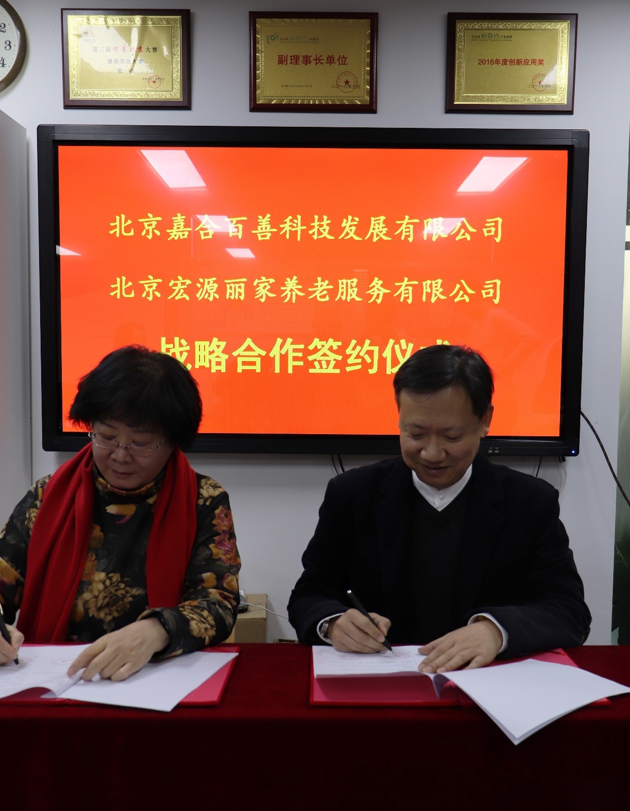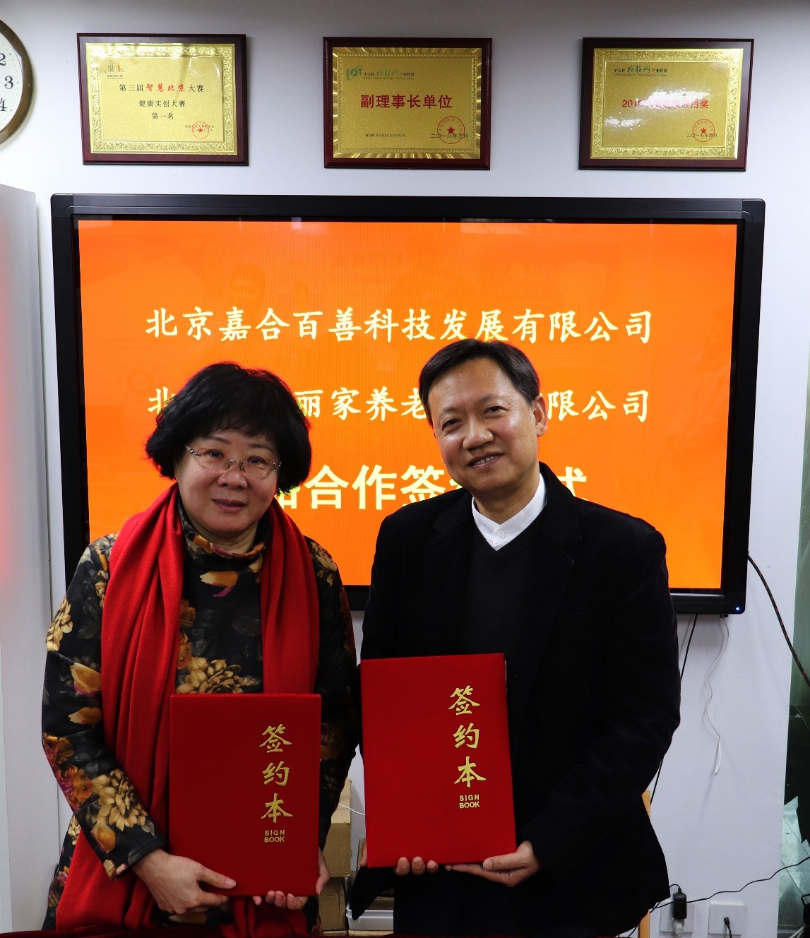 12月30日,在北京嘉合百善總部,北京嘉合百善董事長遲勝與北京宏源麗家集團(tuán)董事長汪曉紅隆重舉行《北京嘉合百善科技發(fā)展有限公司與北京宏源麗家養(yǎng)老服務(wù)有限公司戰(zhàn)略合作》簽約儀式,雙方將攜手建立緊密合作伙伴關(guān)系,傾情打造宏源麗家養(yǎng)老服務(wù)品牌連鎖。